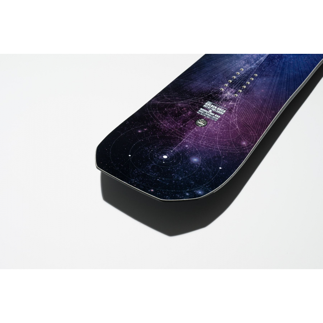 Goldene Orca 161: Das ist mein ultimatives Backcountry-Freestyle-Board, das ich für die Natural Selection Tour und zum Filmen aus dem Köcher ziehe. Auch hervorragend fürs Resort geeignet - der dämpfende Kern und die zusätzliche Stabilität (durch die zusätlichen Zentimeter) bügeln jede Unebenheit glatt.