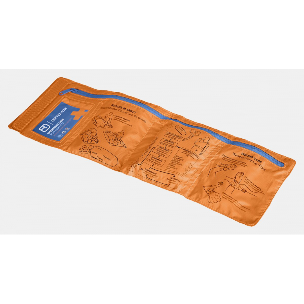 Illustrationen und Beschriftungen informieren dich über den Inhalt jeder Kammer und die richtigen Versorgungstipps. In der ersten Kammer befindet sich außerdem die ORTOVOX Notfallkarte. Sie gibt dem Ersthelfer Basisinfos zur Benachrichtigung der Notfall-Kontaktpersonen, zum Absetzen von Notrufen sowie Informationen über den Verunfallten. Allergien, Erkrankungen, Kontaktdaten sowie die persönlichen Daten sind auf der Notfallkarte erfasst.